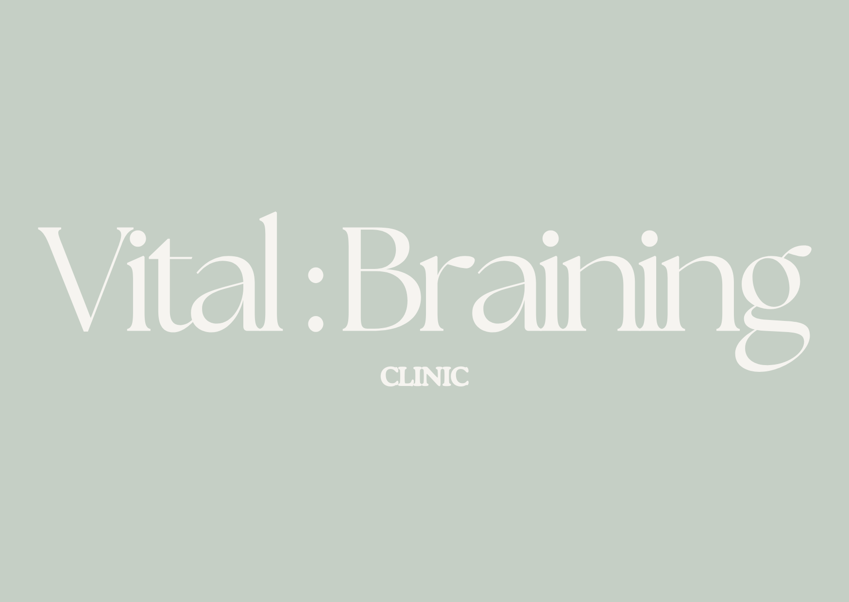 Cartaz de boas-vindas ao Vitalmind Clinic, oferecendo serviços de psicologia com o slogan 'Therapy Done Differently', sobre um fundo de folhas e frutos em tons suaves.